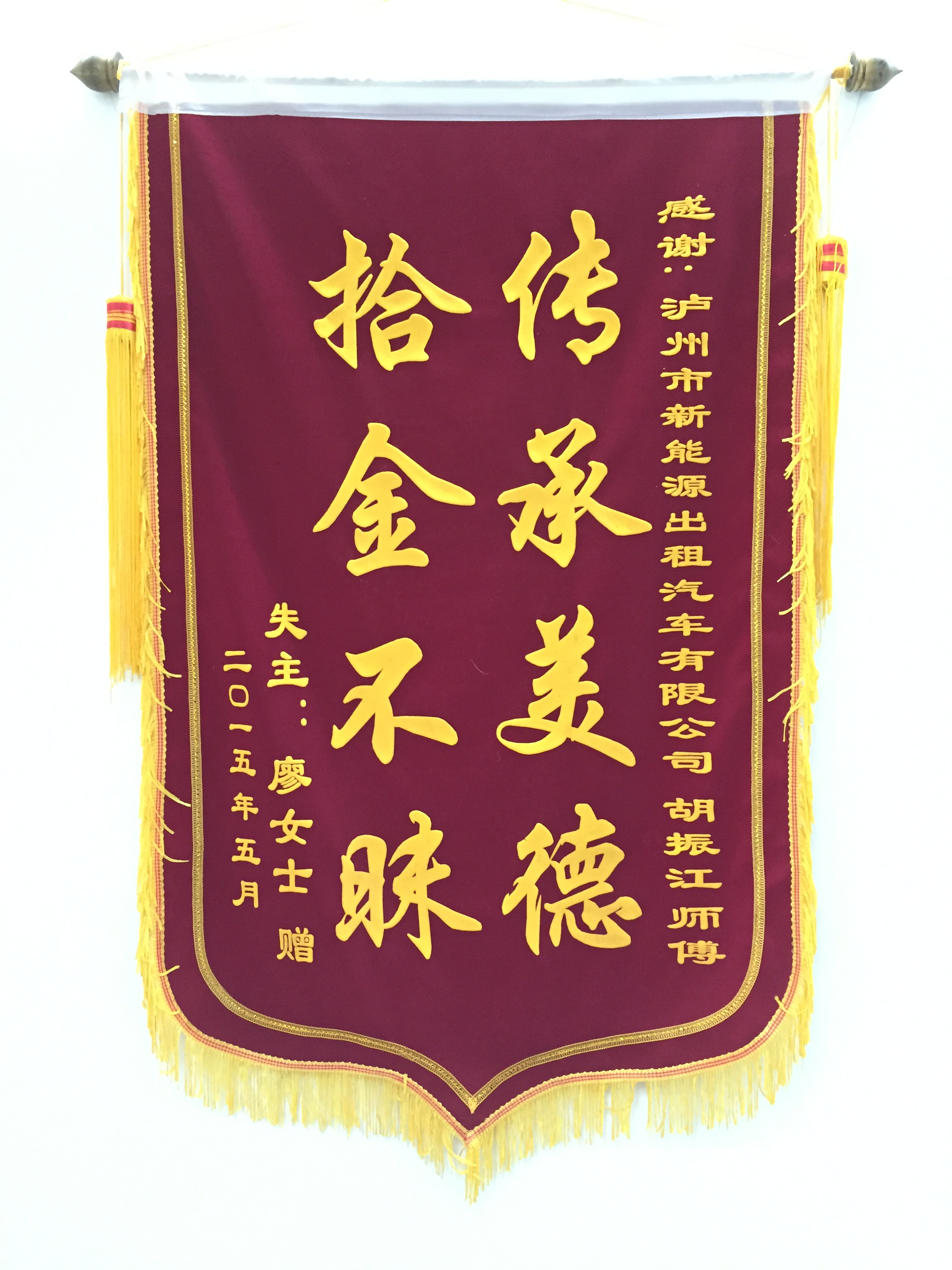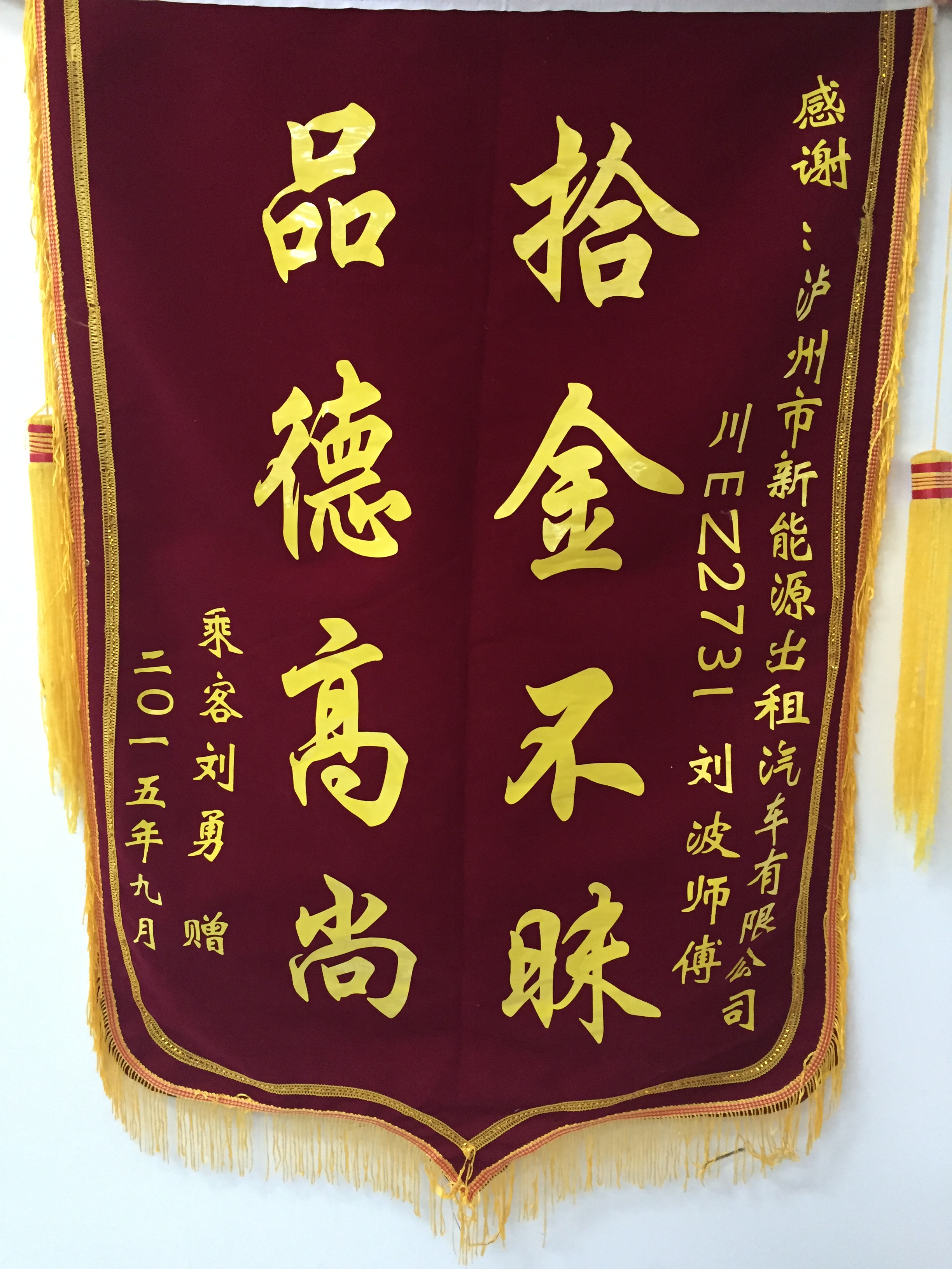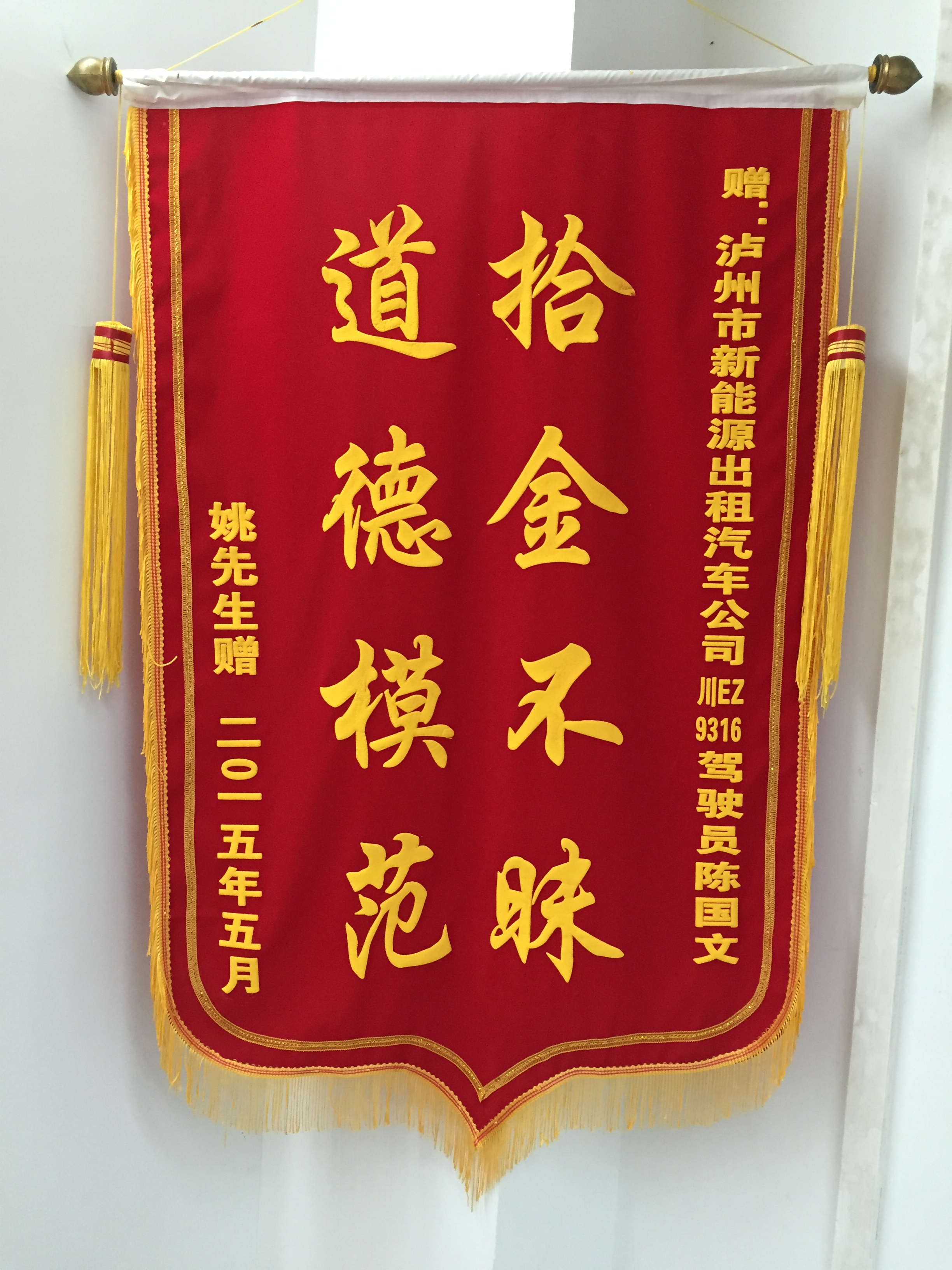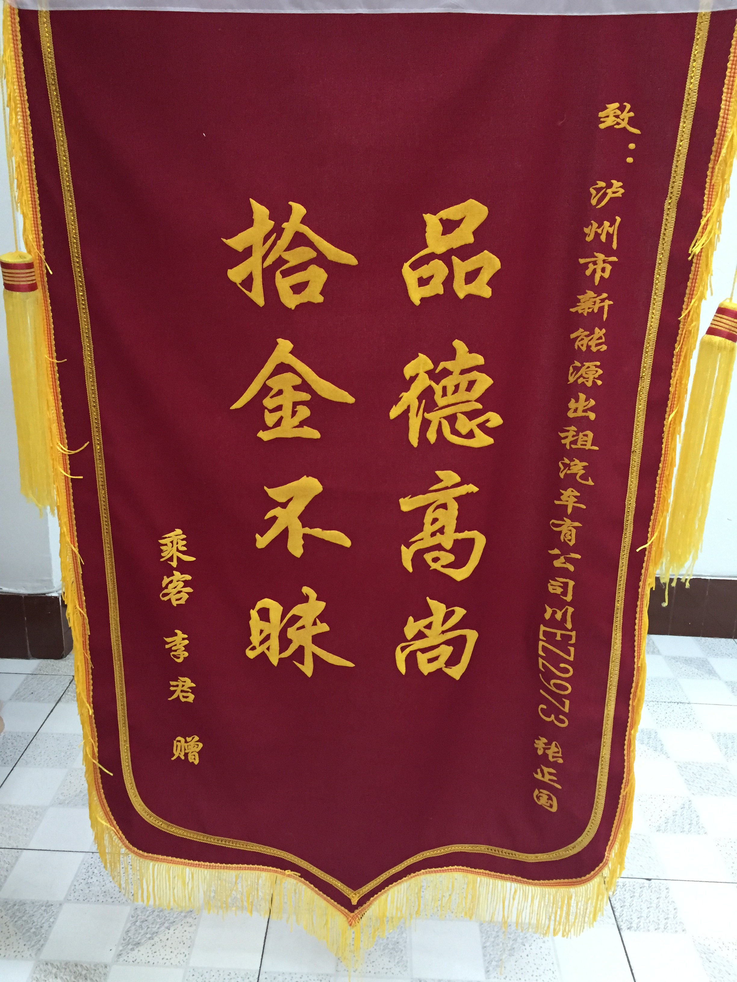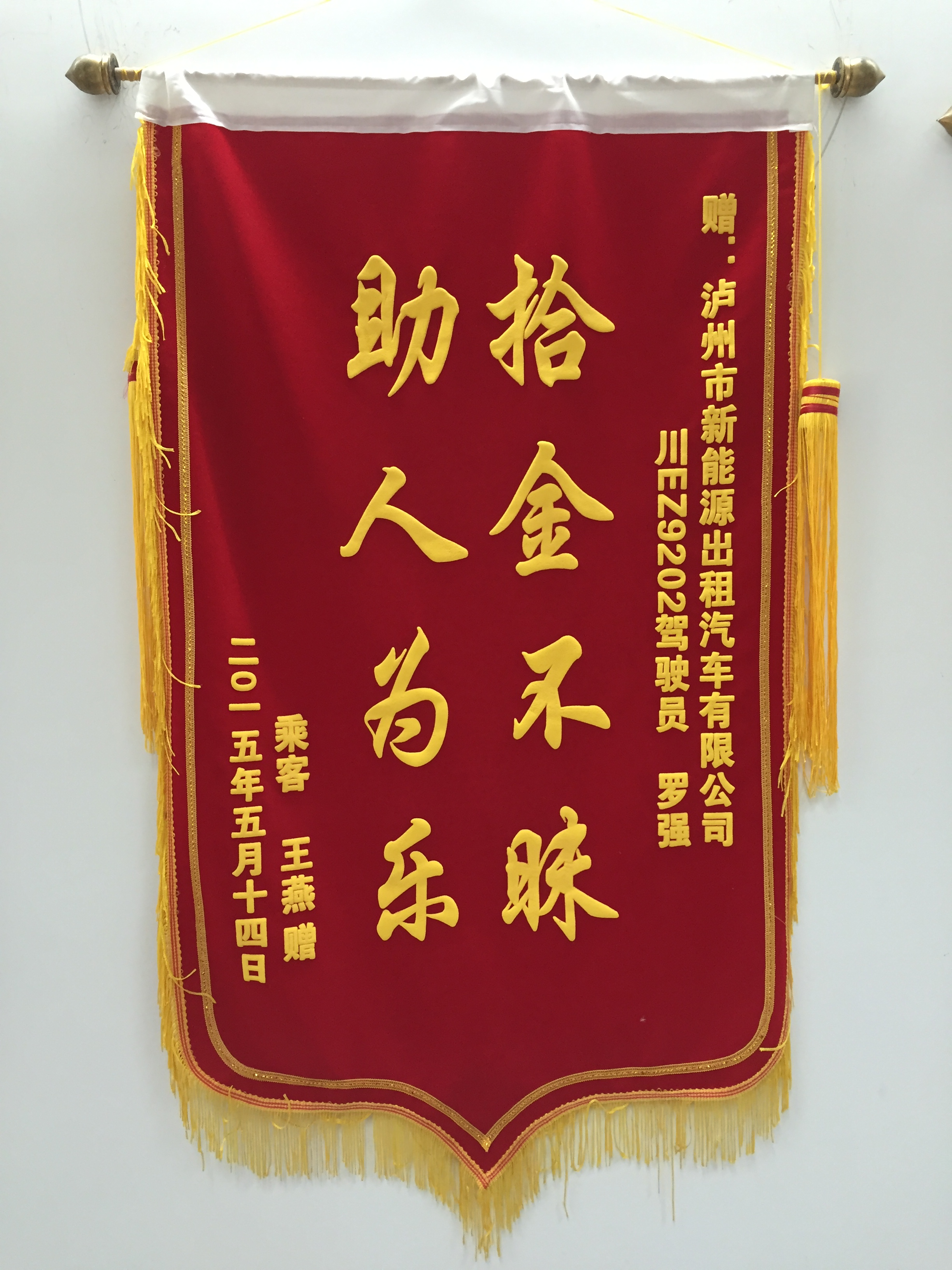 川EZ9202駕駛員羅強(qiáng)于5月7日撿到乘客王燕重要資料,及時(shí)交還乘客。乘客送來(lái)錦旗感謝