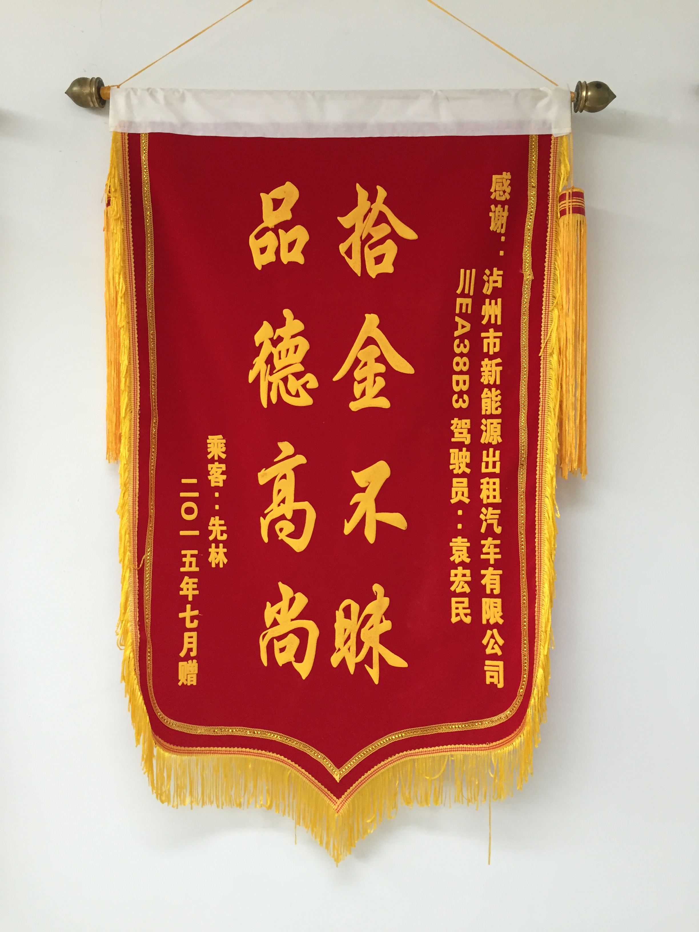 川EA38B3駕駛員袁宏民7月30日拾到三星手機(jī)一部,已交還乘客。乘客送來(lái)錦旗感謝